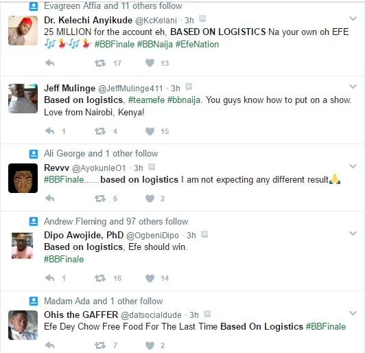 Nigerians are reacting to the landslide victory of Efe at the just concluded 2017 Big Brother Nigeria show. Efe won with 57.61 per ...