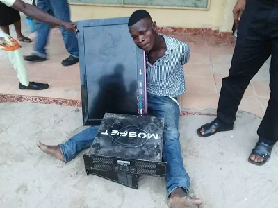 A burglar has been nabbed while escaping with goods he stole from a church in Delta state. He was caught with a plasma TV, money and some...