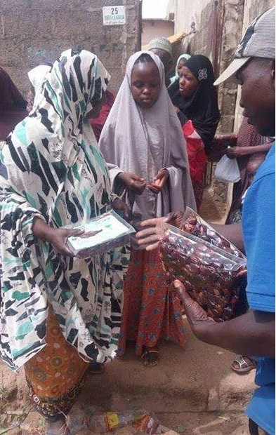 quickly started sharing the remnant of the dates fruits to few IDPs and