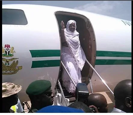 The wife of the president, Aisha Buhari, has returned to the United Kingdom where her husband is on medical vacation.