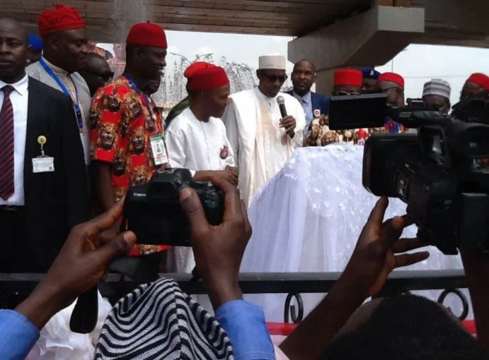 PHOTOS: Buhari Commissions Projects, Receives Chieftaincy Title In Igboland