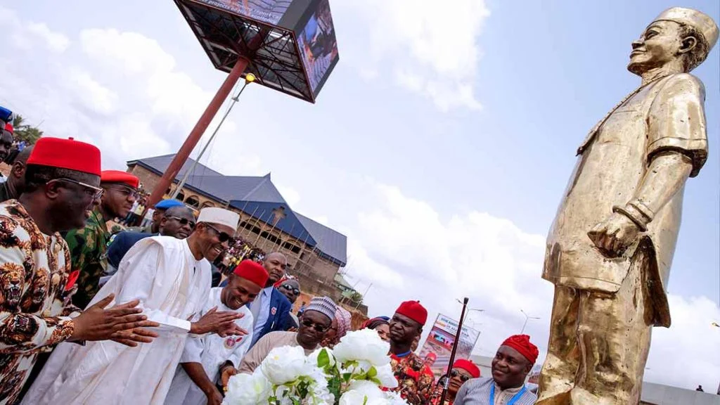 The President also commissioned the 14.5km Abakaliki-Afikpo Federal Road reconstructed by Governor Umahi. He also unveiled the Akanu Ibiam statue mounted at the Spera-in-Deo Roundabaout/Flyover.