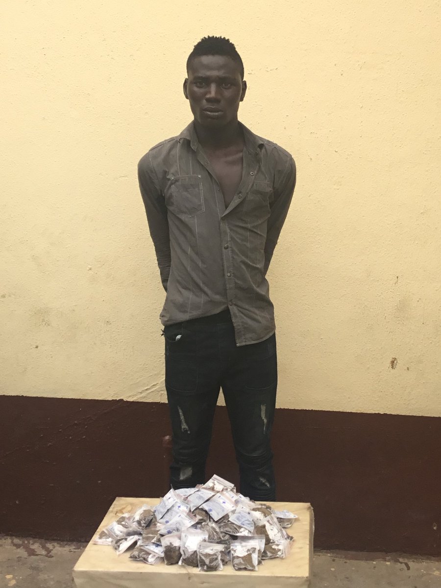 RRS nabs 27 year old Road Union member with 134 raps of Indian Hemp packaged in drug sachets. The Suspect, Tayo Ayoade, says men in sui...